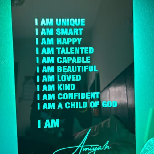 "Imádom, hogy testre szabhatom a saját megerősítéseimet ezen a tükörön, ez egy egyedi érintés a rutinomban!"